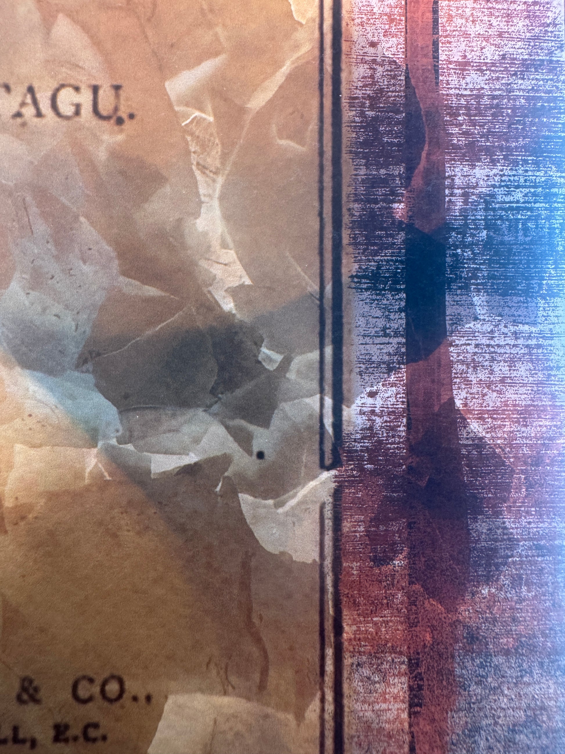 I create this piece to celebrate a time when I didn't have to work on Shabbat. This piece starts with an image of a cafe chalk board that a lot of people had drawn and written on. The combination of religio-political messages on the chalkboard was unhinged gibberish. I covered that over with a green Coach bag zipper, an overflowing bowl of Cuties brand tangerines, and a decadent metal bowl of broken eggshells.