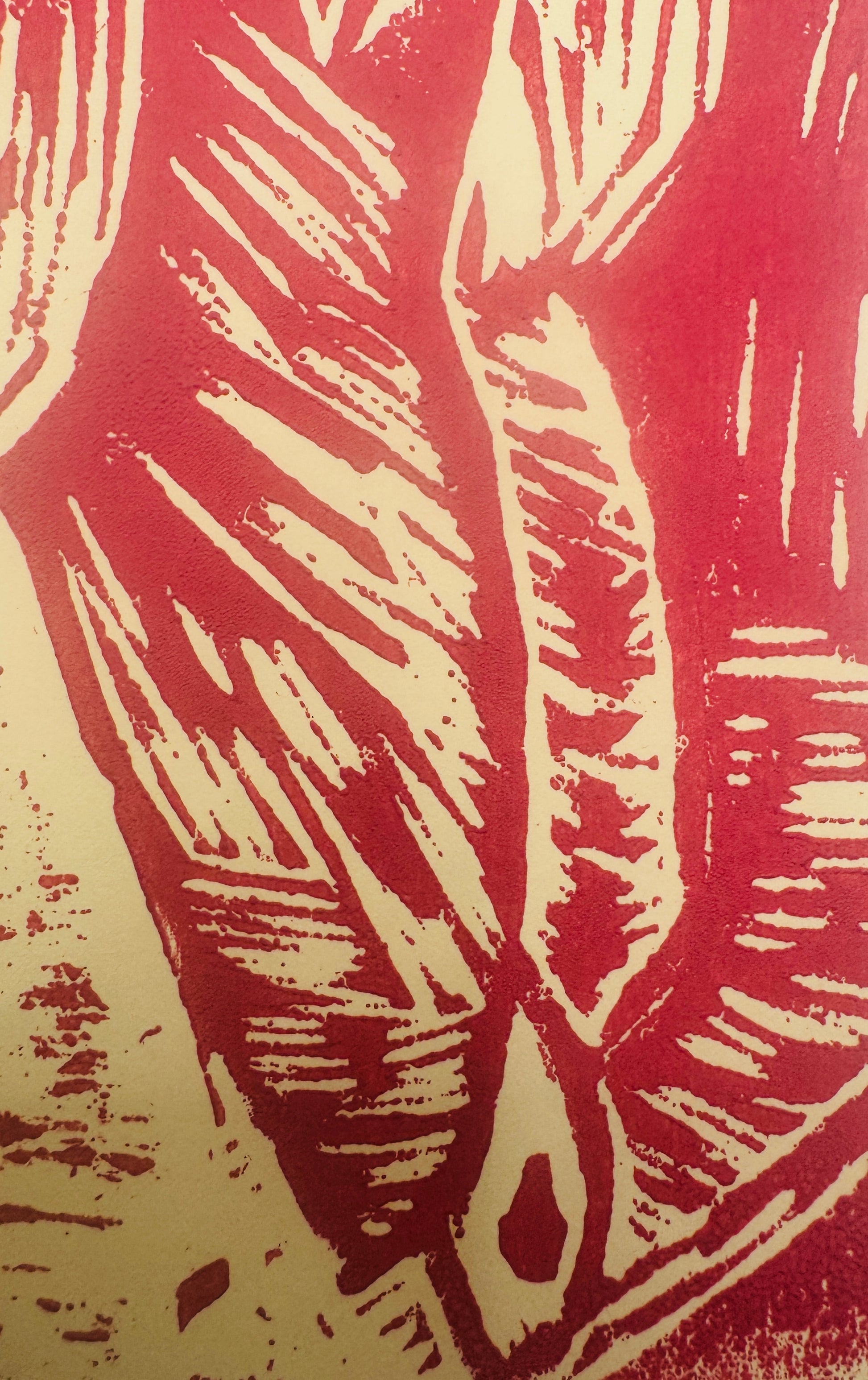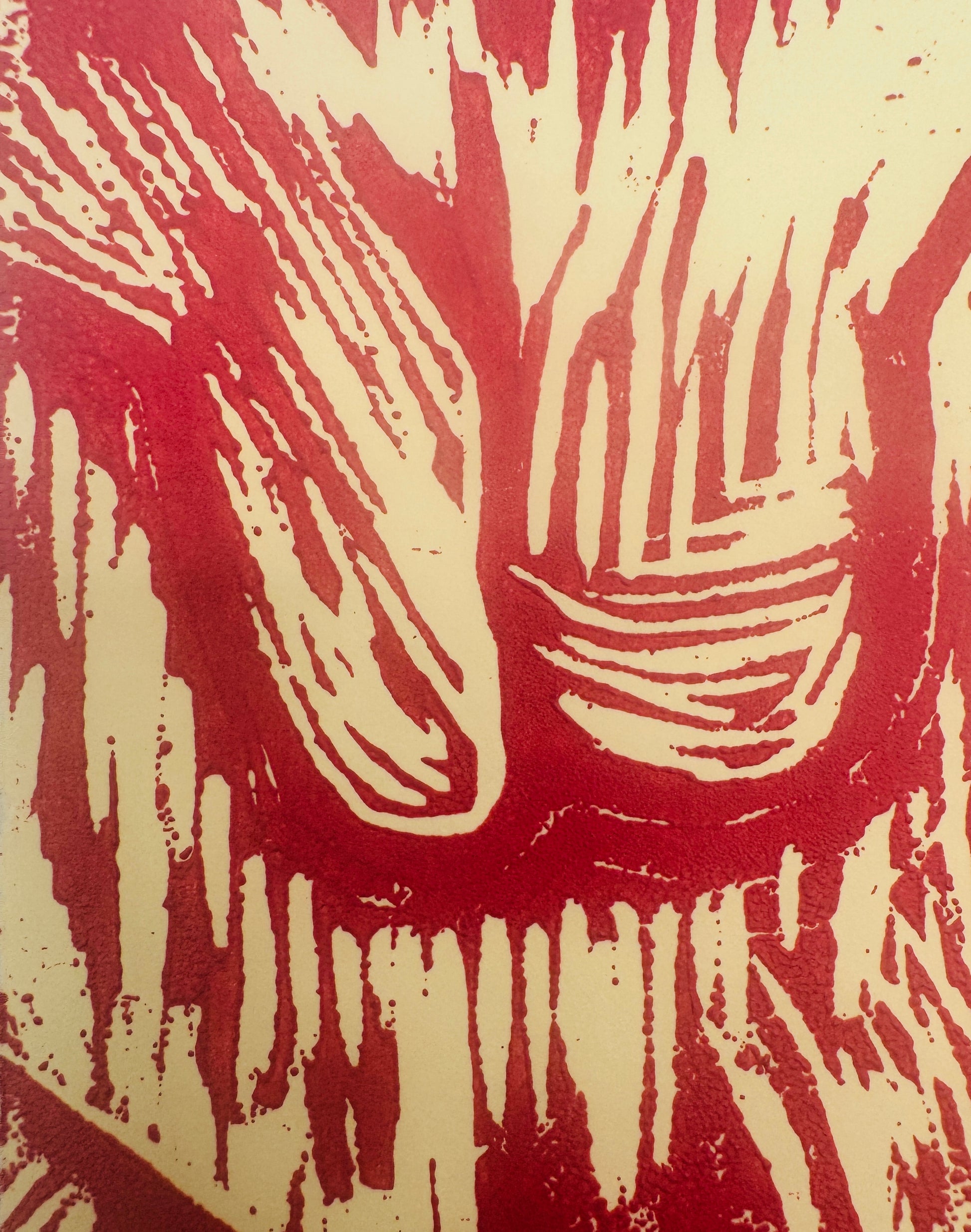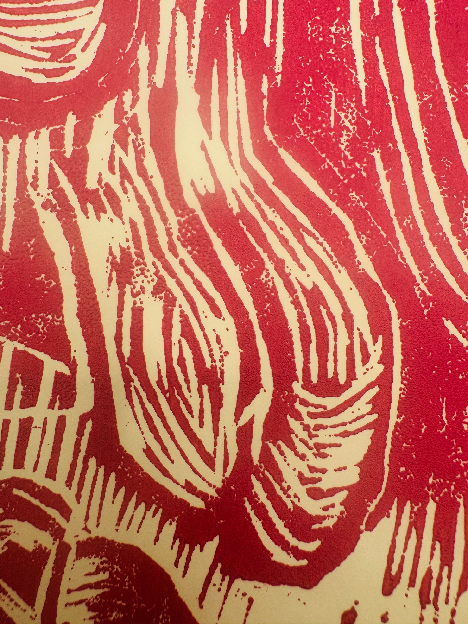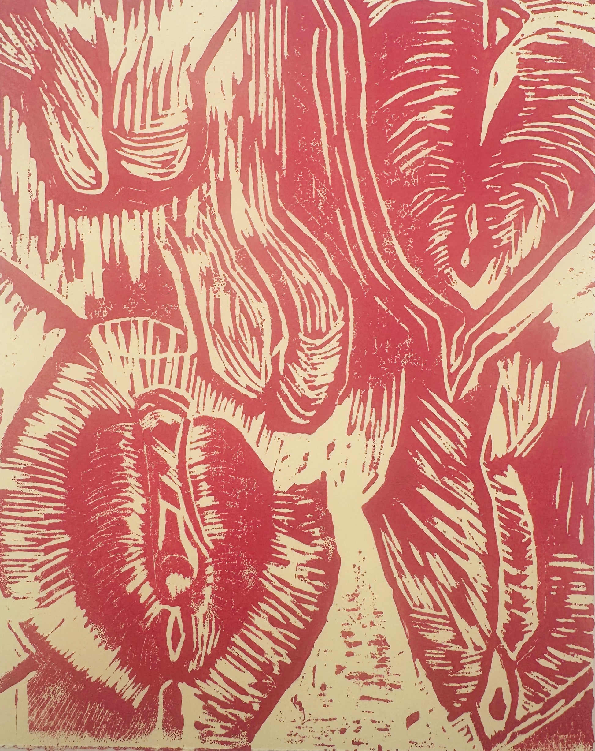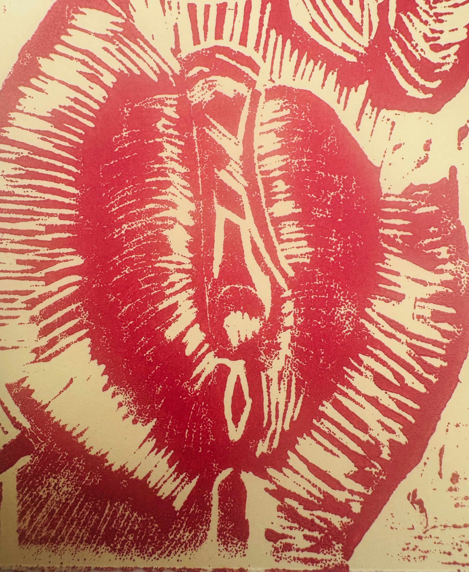 2021. I drew a vulva drawn from five different angles, and then carved the shapes into a woodblock made of plywood and veneer.